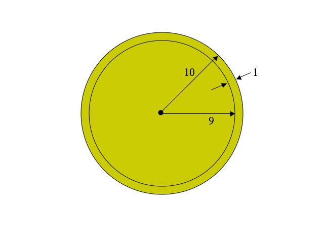 You can have either the inner sphere of radius 9 or the outer shell of thickness 1. Which piece do you want?