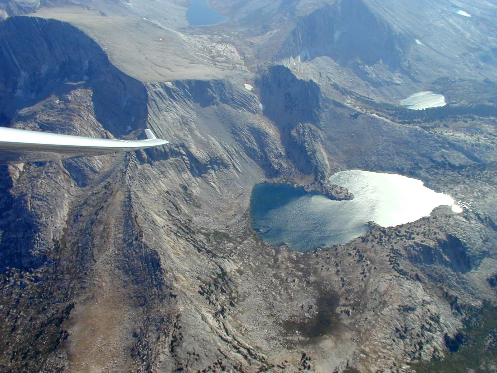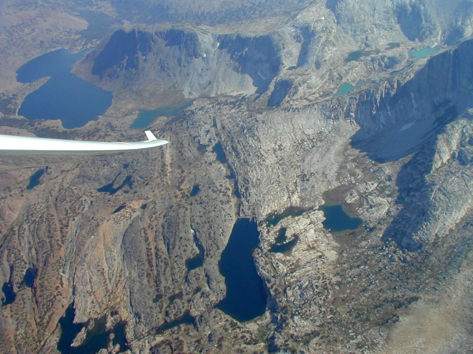While it is a rare treat, soaring the Sierras is truly awesome. Their higher moisture content reduces thermal activity, but also creates unbelievably beautiful scenery: forests, meadows, lakes, and small glaciers capping some of the higher peaks year-round.
