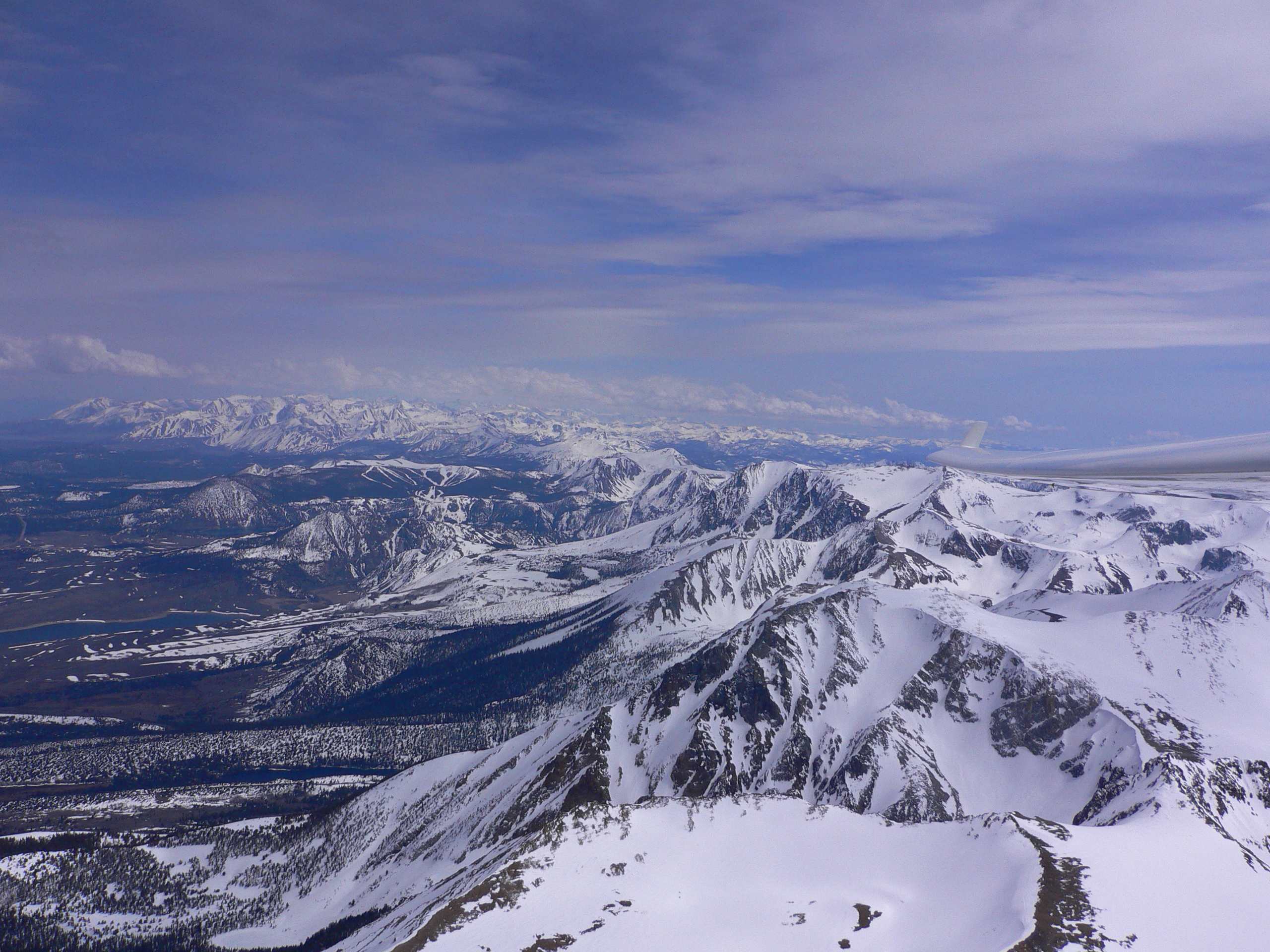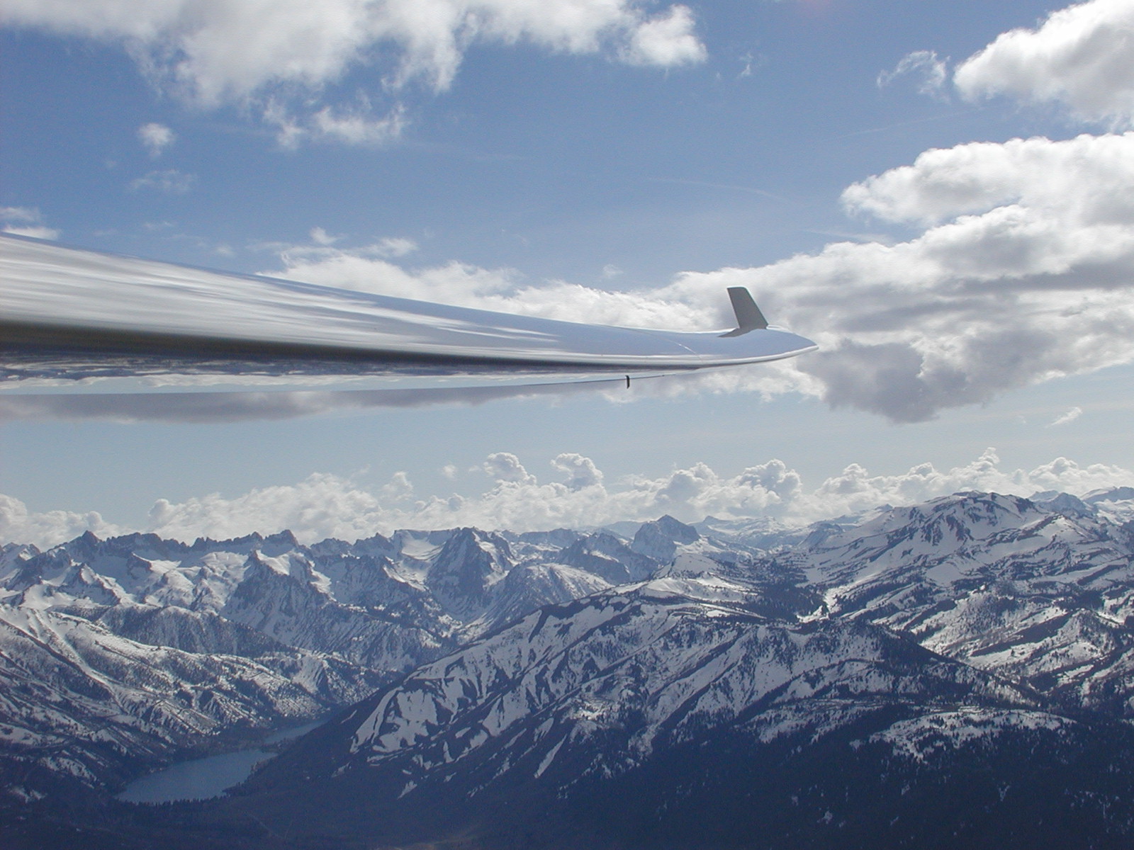 Mono Lake and Tioga Pass Road from 14,000'. This photo was taken from a thermal that gained us 2,000' of altitude in 5 minutes. Location is approximately 3 miles WNW of the Tioga Pass entrance to Yosemite and 3 miles SSE of Mt. Conness.